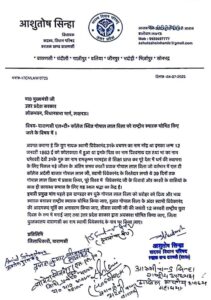 पत्र में आशुतोष सिन्हा ने राज्य सरकार के समक्ष तीन अहम मांगें रखीं: